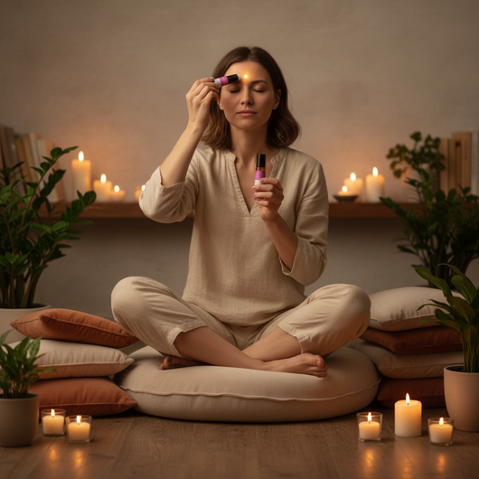 A harmonious fusion of soft florals, sacred resins, and grounding woods brings stillness, depth, and a deeper inner seeing.